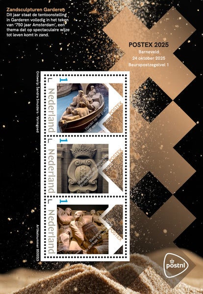 Met gepaste trots presenteren wij onze eigen officiële PostNL-uitgifte: een bijzonder postzegelvel gewijd aan de Zandsculpturen Amsterdam 750 jaar. De zegels tonen in detail enkele van de indrukwekkende zandkunstwerken uit de tentoonstelling in Garderen een eerbetoon aan 750 jaar Amsterdam in zand vereeuwigd.