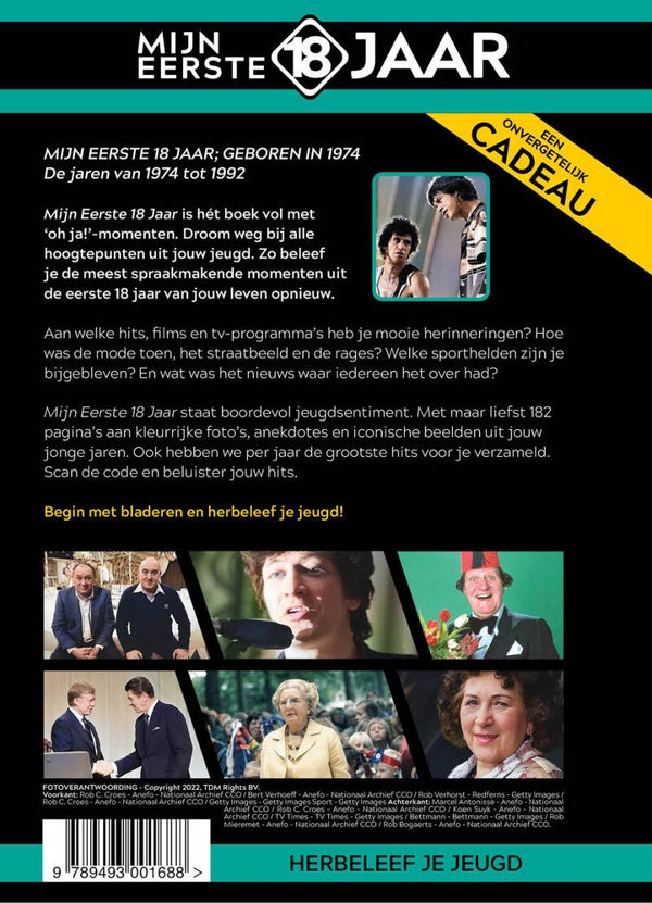Mijn eerste 18 jaar is het boek vol met ‘oh ja!’-momenten. Droom weg bij alle hoogtepunten uit jouw jeugd. Zo beleef je de meest spraakmakende momenten uit de eerste 18 jaar van jouw leven opnieuw.