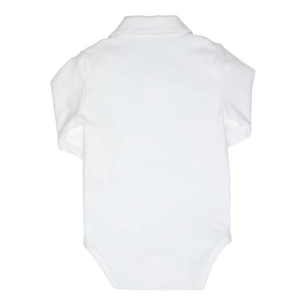 Deze romper met lange mouwen en een polokraag is een perfecte mix van comfort en stijl. Met handige drukknoopsluitingen voor eenvoudig verschonen en een klassieke uitstraling die ideaal is voor speciale gelegenheden. Gemaakt van onze 'signature' jersey van stretch biokatoen, met antipilling finish.