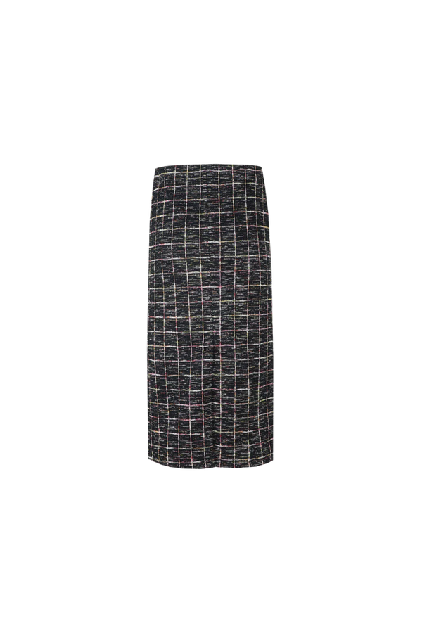 Ga dit seizoen voor een klassieke look met de Ente tweed rok. Deze rok heeft een halflang kokerrok model. Style deze rokmet de Marlie blazer voor een compleet pak.