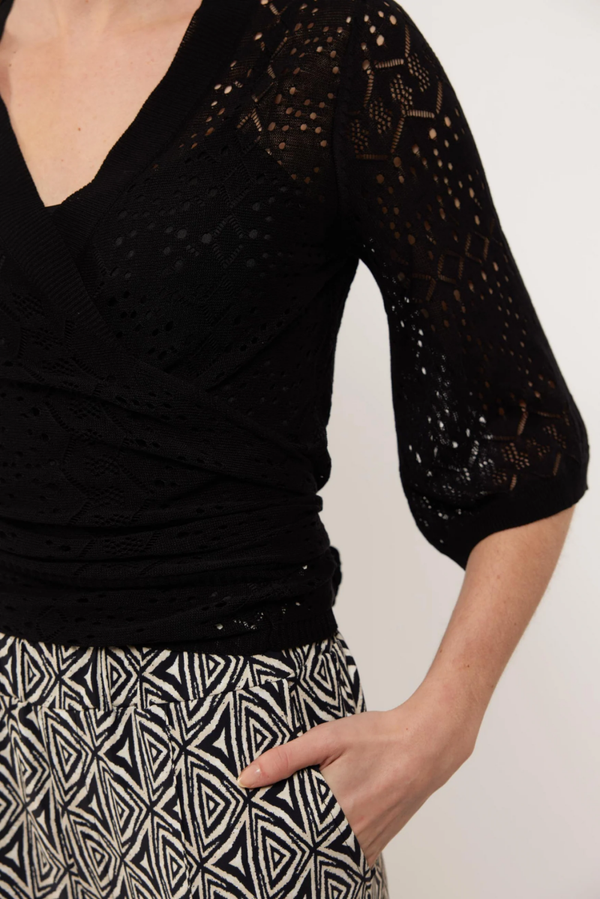 Het Cinar vest is een echte eyecatcher knit van deze zomer. Dit vestje is namelijk voorzien van een gebreid motief en heeft een wikkelmodel met een striksluiting dat gestyled kan worden op diverse manieren.